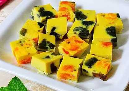 7.再把咸蛋黃與皮蛋放入