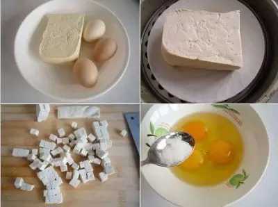 主料:雞蛋5個、豆腐60g、蘑菇40g、豬肉50g