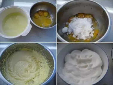 1.蛋黃、蛋清分開,放入兩個容器中。