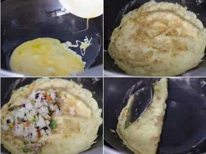 13.將炒飯放入蛋皮中間