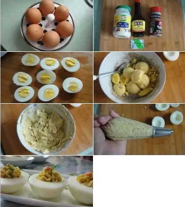 1.雞蛋煮熟或蒸熟(只用4個)。