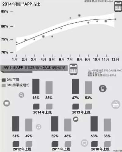 分析師李智告訴記者,“有些App還沒研發出來就胎死腹中,有些出生即是死亡,更多的App雖然仍在應用市場上,但早已無人問津。”
