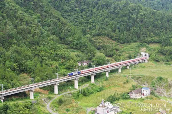 一列火車駛過雙河口峽谷。宜萬鐵路(宜昌到萬州)和滬渝高速平行,是全世界最難修建的鐵路(沒有之一)。中國以外沒有一條鐵路有超過一座百米以上高度橋梁——宜萬鐵路有6座。377公里鐵路有288公里在隧道或橋上。注:宜萬鐵路最難的不是橋,是隧道穿過無數巨大的充水石灰巖溶洞,鄂西大山都是石灰巖中空的,別看外表雄偉,里面千瘡百孔。有的洞內為支撐洞頂修起的鋼筋 混凝土巨柱行列望之不遜Lord of the Rings中Moria地下大殿,比日本東京首都圈排水系統壯觀的多;有的洞內為越過暗河修建大型洞中橋梁。因溶洞水量極大先后犧牲數十名工人。平行的滬 渝高速公路因選線較高避免了大部分溶洞,基本無工人死亡。此后中國在巖溶地區修建鐵路吸取教訓,選線寧高勿低,高海拔溶洞相對少,即使有洞大多是干的,山 底溶洞大多充滿數百萬甚至更多立方水!)