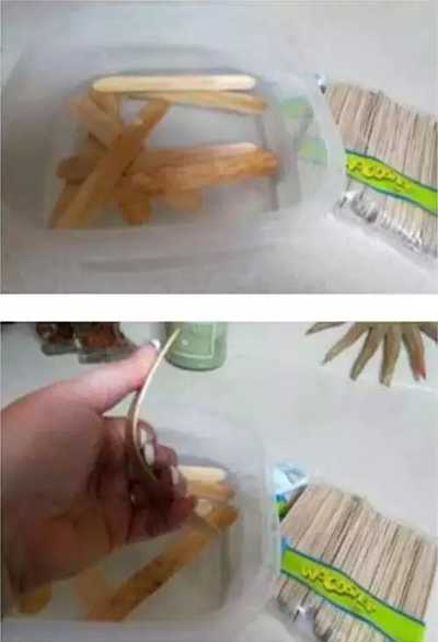 雪糕棍是怎么變彎的?用水泡上一段時間,然后把它放入杯子里,固定彎曲的狀態: