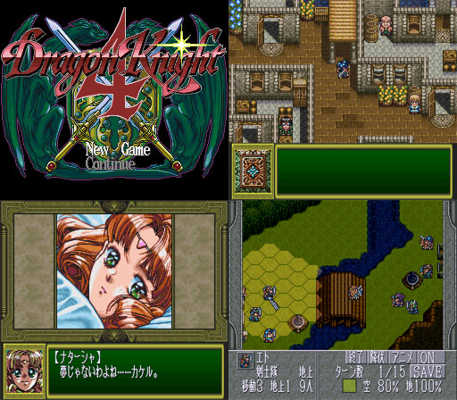 《龍騎士》是ELF得以成名的作品,游戲是帶有H畫面的RPG游戲,其第四代是一款SRPG游戲,也是國內較為熟知的一代。SFC版去掉了那些H畫面,成為全年齡適應的游戲。游戲前后兩部分分別以主角少年和成年的視角展開,進行兩次不同的人生體驗,游戲的H部分反而并不重要。游戲的戰略系統有一定的難度。